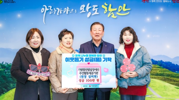 [파이낸셜경제=김예빈 기자] 함안군은 지난 8일 가람함안발달장애인 주간활동제공기관이 ‘제6회 함안애(愛)복지박람회’에서 마련한 수익금 100만 원을 지역사회에 기부했다고 밝혔다.