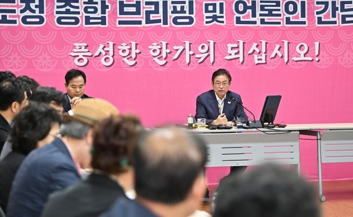이날 간담회는 2025 에이펙(APEC) 정상회의 개최 D-30일을 앞두고 에이펙 총괄 진행 상황을 도민에게 소상히 알리고 성공개최를 위한 관심과 협조를 당부하는 동시에 추석 명절 종합대책, 산불특별법과 혁신적 재창조, 지역공약․국정과제 추진계획을 설명하기 위해 마련됐다.