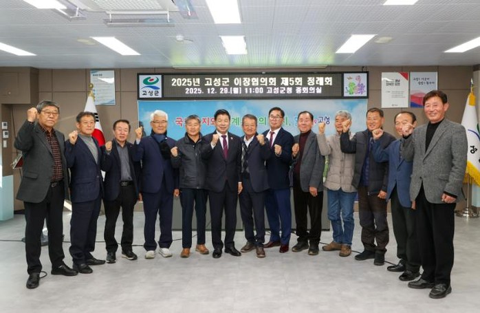 [파이낸셜경제=김예빈 기자] 고성군 이장협의회는 12월 29일 군청 중회의실에서 이상근 고성군수, 배삼태 지회장, 각 읍면 협의회장 등 16명이 참석하여 ‘2025년 고성군 이장협의회 제5회 정례회’를 개최했다.