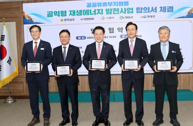 이번 협약을 통해 전남도와 영광군은 유휴 공공부지 발굴과 행정지원, 개발이익 공유계획 수립을 담당하고, 한전KDN은 재생에너지 설비의 효율적 운영과 통합관리체계 구축을 맡게 된다.