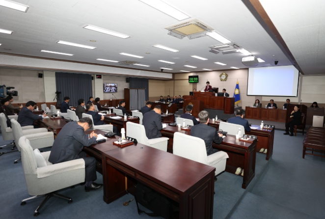 이날 제2차 본회의에서는 ▲ 2026년도 예산안 총 1조 3,020억 원 중 33억 7천 8백 7십 2만 원을 삭감, 기획예산실 소관 내부유보금에 반영토록 했으며, 상임위원회별로 예비 심사 보고된 조례안 및 일반안건 등 총 23건에 대해 21건은 원안 가결하고 2건은 수정 가결했다.