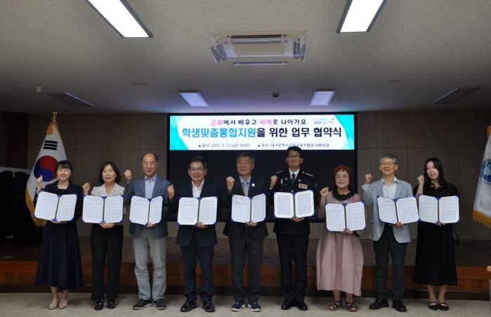 [파이낸셜경제=김지훈 기자] 대구군위교육지원청은 9월 12일 군위교육지원청 대회의실에서 지역 9개 기관과 ‘학생맞춤통합지원 업무협약’을 체결했다.