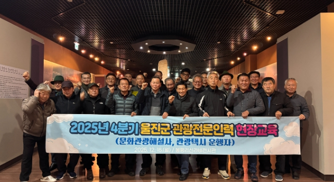[파이낸셜경제=김지훈 기자] 울진군은 지난 12월 15일 울진봉평리신라비전시관에서 울진군 관광택시 운행자와 문화관광해설사를 대상으로 2025년 4분기 울진군 관광전문인력 정기교육을 실시했다.
