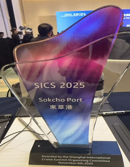[파이낸셜경제=조성환 기자] 강원특별자치도와 속초시, 강원관광재단은 11월 6일 중국 상하이에서 열린 '2025 상하이 국제 크루즈 서밋(Shanghai International Cruise Summit)'에서 속초항이 ‘아시아 우수항만상(Emerging Cruise Port Development Award)’을 수상했다고 밝혔다.