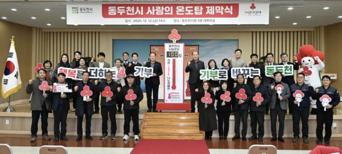 [파이낸셜경제=김영란 기자] 동두천시는 지난 12월 12일 동두천시청 대회의실에서 동두천시장을 비롯해 동두천시의회 의장 및 의원, 경기북부 사회복지공동모금회 관계자, 기업·단체·시민 등 40여 명이 참석한 가운데 ‘사랑의 온도탑’ 제막식을 개최했다.