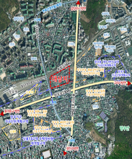 | ▲ 위치도(중랑구 신내1동 493-13번지 일대 모아타운) |