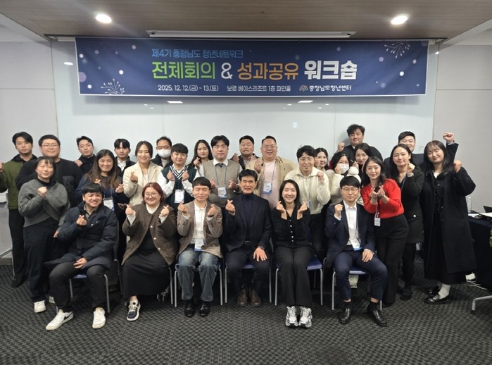 충남청년센터는 지난 12월 12일부터 13일까지 이틀간 보령베이스리조트 파인홀에서 '제4기 충남청년네트워크 전체회의 및 성과공유 워크숍'을 개최했다고 밝혔다.