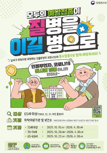 65세 이상 어르신의 경우 연령대별로 접종 시기가 구분되는데 ▲75세 이상은 10월 15일 ▲70~74세는 10월 20일 ▲65~69세는 10월 22일부터 무료 접종이 가능하다.
