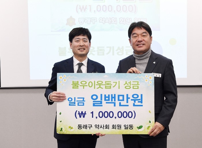 장준용 동래구청장은 “동래구민의 건강을 책임지며 보건 행정에도 적극 협조해 주시는 동래구 약사회에 감사드린다”라며 “기탁해 주신 성금은 도움이 필요한 취약계층에 소중히 전달하겠다”라고 말했다.