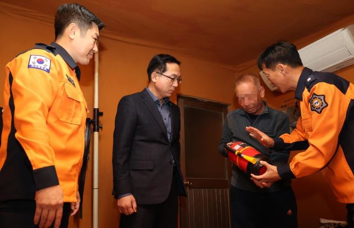 특히, 이날 박희조 동구청장과 이준서 동부소방서장은 독거노인 가구를 방문해 화재안전키트를 직접 설치하고, 전기화재 예방 및 대응 요령을 안내하며 주거환경의 안전 상태를 함께 점검했다.