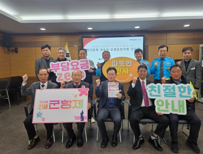 [파이낸셜경제=김예빈 기자] 창원특례시는 19일 관내 택시업계 대표자와 모범운전자지회장이 참석한 가운데 제64회 진해군항제 택시서비스 향상을 위한 간담회를 가졌다고 밝혔다.