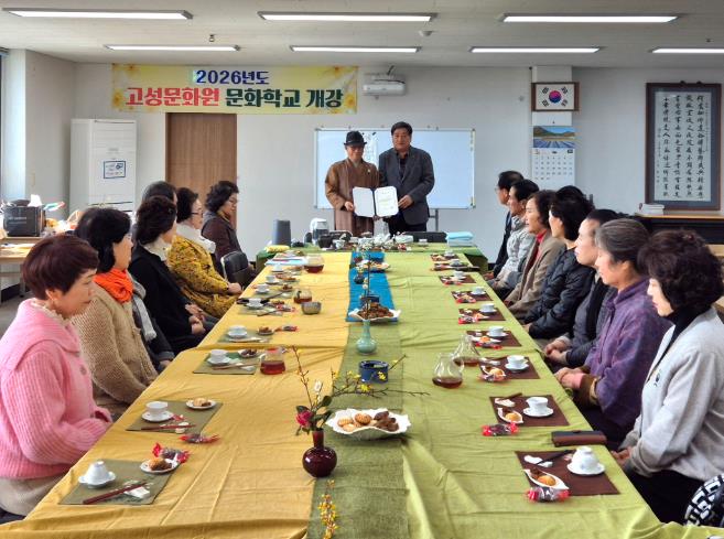 백문기 고성문화원장은 “문화학교는 군민 누구나 쉽게 문화예술을 접하고 배울 수 있는 열린 공간”이라며, “앞으로도 전통문화를 지속적으로 계승·발전시키는 한편, 다양한 프로그램을 통해 군민들의 건전한 여가 활동과 삶의 질 향상에 이바지하겠다”라고 말했다.