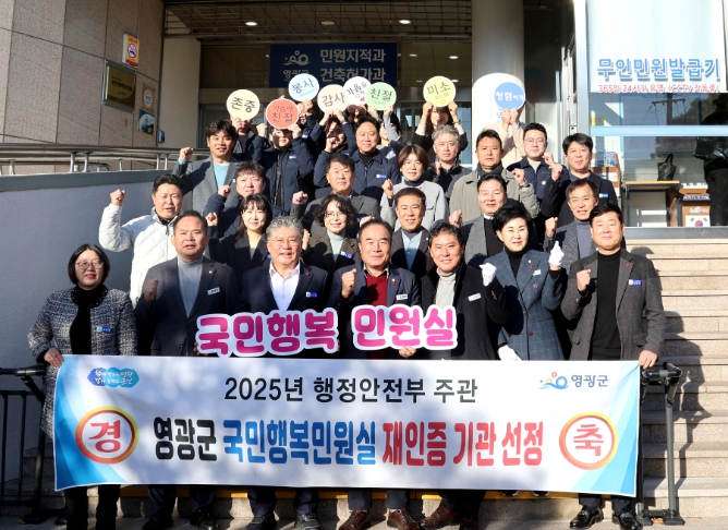 영광군 관계자는“이번 국민행복민원실 선정은 군민 여러분의 신뢰와 현장에서 묵묵히 최선을 다한 민원 담당 공무원들의 노력이 함께 만들어낸 결과”라며 “앞으로도 군민 한 분 한 분의 목소리에 귀 기울이며 더욱 친절하고 신뢰받는 민원행정을 구현해 나가겠다”라고 밝혔다.