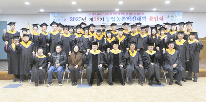 [파이낸셜경제=김예빈 기자] 순창군은 28일 농업기술센터 다목적 강당에서 제18기 농업농촌혁신대학 졸업식을 개최하고, 9개월간의 교육과정을 성실히 이수한 교육생들에게 졸업장을 수여했다.