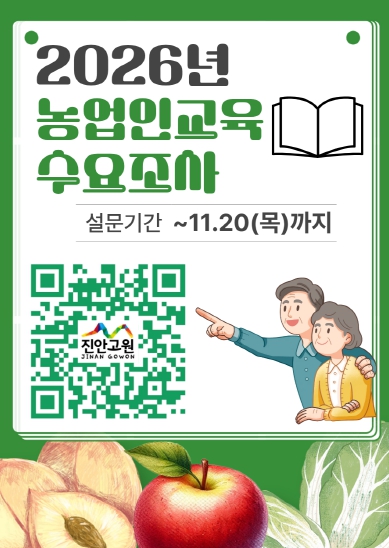 | ▲ 진안군, 농업인 교육 수요조사 11월 20일까지 실시(2026 교육수요조사 포스터) |