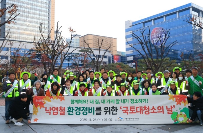 [파이낸셜경제=김지훈 기자] 대구 수성구는 26일 대구광역시 교육청 인근에서 겨울철 낙엽 정비를 위한 ‘국토대청소의 날’ 행사를 개최했다.