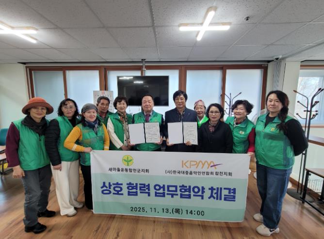 [파이낸셜경제=김예빈 기자] 새마을운동합천군지회와 (사)한국대중음악인연합회 합천군지회는 11월 13일 오후 2시 새마을운동합천군지회 사무실에서 지회 회장단과 지도자, 한국대중음악인연합회 합천지회 회장단 20명이 참여한 가운데 ‘상호협력 업무 협약식’을 가졌다.
