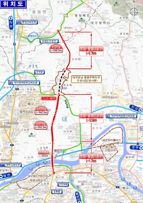 특히, 지난 10월 착공한 2공구와 이번 3공구는 조야동에서 도남·학정·칠곡지구 등 북부지역 주요 생활권과 대구 도심을 직접 연결하는 구간으로, 도시 내외의 통행 효율성을 높이고 지역 간 연계교통망 구축에 시너지 효과를 낼 것으로 기대된다.