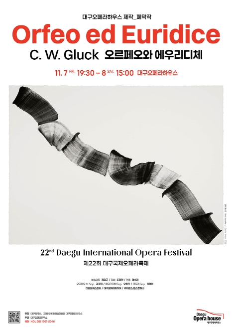 [파이낸셜경제=김지훈 기자] 대구문화예술진흥원 대구오페라하우스는 제22회 대구국제오페라축제의 폐막작으로 글룩의 대표 오페라 ‘오르페오와 에우리디체’를 오는 11월 7일 오후 7시 30분, 11월 8일 오후 3시에 대구오페라하우스 대극장에서 선보인다.