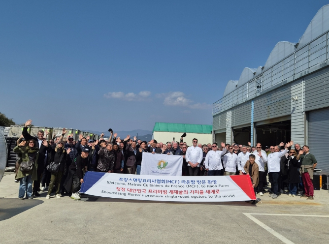 [파이낸셜경제=김예빈 기자] 세계 최고의 미식 권위를 자랑하는 프랑스명장요리사협회(Maîtres Cuisiniers de France) 소속 셰프 180여 명을 포함한 관계자 200여 명이 2026년 3월 21일 경남 거제시의 개체굴 생산 현장인 ‘라온팜’(대표 엄성)을 방문했다.