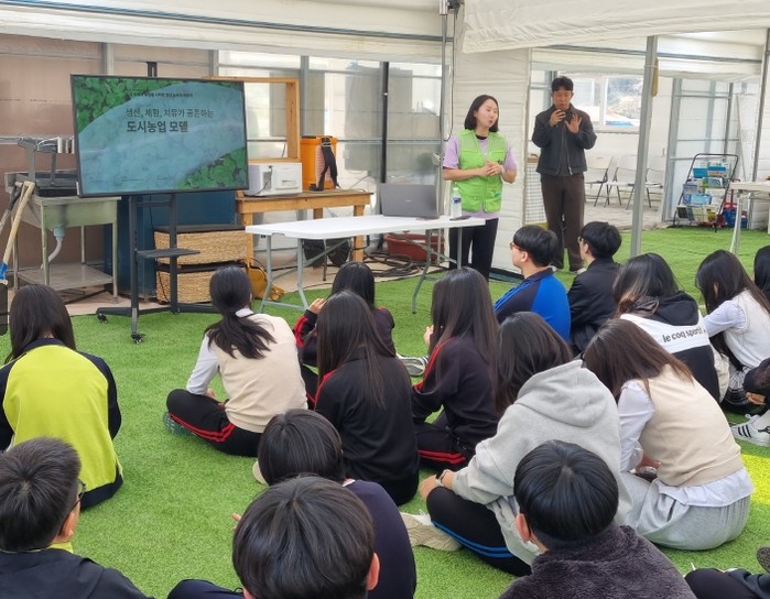 학생들은 서구 산직동 소재 엽채류 수경재배 스마트팜을 방문해 스마트농업 기술과 현장 운영 사례를 학습하며, 농업의 첨단화 과정을 직접 체험했다.