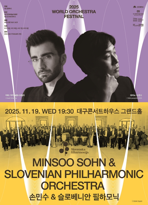 [파이낸셜경제=김지훈 기자] 대구콘서트하우스는 월드오케스트라페스티벌의 일환으로 ‘손민수 · 슬로베니안 필하모닉’ 공연을 11월 19일 오후 7시 30분 그랜드홀에서 개최한다.