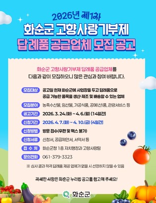 이승준 영암군 유통산업과장은 “농산물 가격 변동성이 커지는 상황에서 최저가격 보장제는 농가 소득을 지키는 안전장치”라며 “많은 농가가 참여해 실질적인 도움을 받길 바란다”고 말했다.