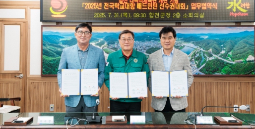 [파이낸셜경제=금윤지 기자] 합천군은 7월 31일 목요일 오전 9시 30분, 군청 2층 소회의실에서 한국초등배드민턴연맹(회장 이용국), 경남배드민턴협회(회장 이만기)와 ‘2025 전국학교대항 배드민턴 선수권대회(초등)’ 유치 협약을 체결했다고 밝혔다.