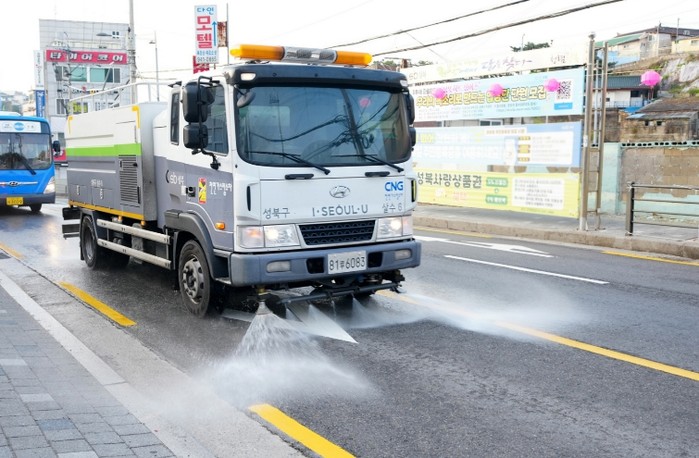 | ▲ 성북구가 봄맞이 대청소를 맞아 물청소 차량을 투입했다 |
