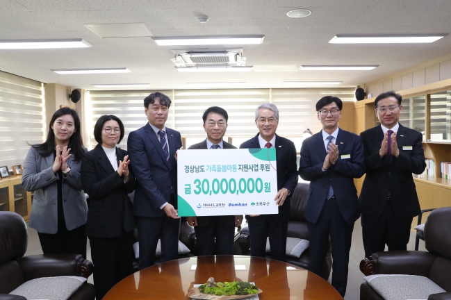 [파이낸셜경제=김영란 기자] 경상남도교육청은 6일 경남교육청 교육감 집무실에서 범한그룹, 초록우산어린이재단 경남지역본부와 함께 ‘가족돌봄아동지원사업’ 후원금 전달식을 개최했다.