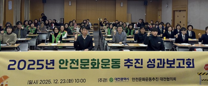 [파이낸셜경제=김영란 기자] 대전시는 23일 대전시청 세미나실에서 안전문화운동추진 대전협의회 소속 기관 및 단체 관계자 100여 명이 참석한 가운데 2025 안전문화운동 추진 성과보고회를 개최했다.