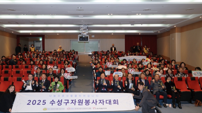 [파이낸셜경제=김지훈 기자] 대구 수성구자원봉사센터는 지난 17일 자원봉사자의 날(12.5.)을 기념해 범어도서관 김만용·박수년 홀에서 14만여 명의 수성구 자원봉사자들의 노고를 격려하는 ‘2025 수성구 자원봉사자 대회’를 개최했다.