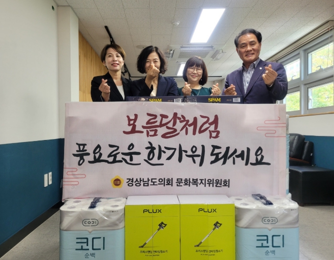 [파이낸셜경제=김예빈 기자] 경상남도의회 문화복지위원회(위원장 박주언)는 24일, 민족 고유의 명절인 추석을 앞두고 김해 장유1동 주민센터를 방문해 관내 지역아동센터 2곳에 위문품을 전달하고 시설운영 현황과 애로사항을 청취했다.