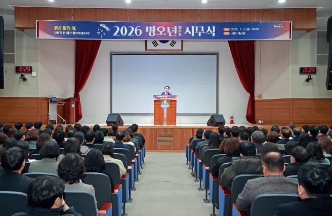 [파이낸셜경제=김예빈 기자] 사천시는 2일 오전 10시 시청 대강당에서 박동식 사천시장을 비롯해 김제홍 부시장, 국·소장 및 전 직원이 참석한 가운데 2026년 병오년 시무식을 개최했다.