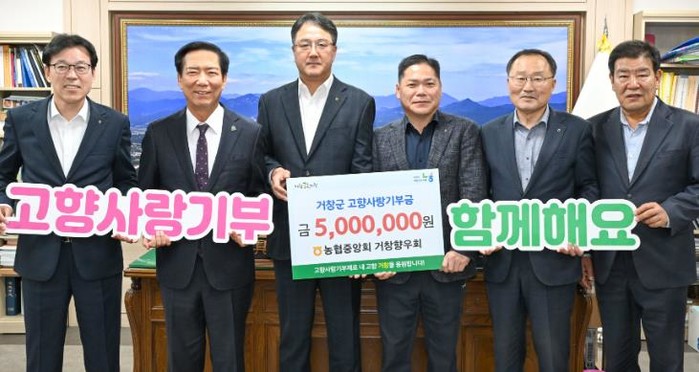 농협중앙회 거창향우회는 거창 출신으로 농협중앙회와 농협은행에 재직하고 있는 향우들의 모임으로 서울과 경남 지역에 재직하고 있는 30여 명의 회원으로 구성되어 있으며, 고향사랑기부제 시행 첫해 500만 원 기부에 이어 올해도 고향의 발전을 응원하며 기부에 동참했다.