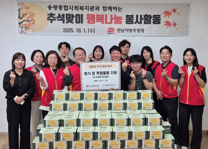 [파이낸셜경제=김예빈 기자] 전남지방우정청은 지난 1일 추석 명절을 맞아 광산구 소재‘송광종합사회복지관’을 방문하여 배식 봉사활동 및 후원물품 전달행사를 진행했다고 밝혔다.