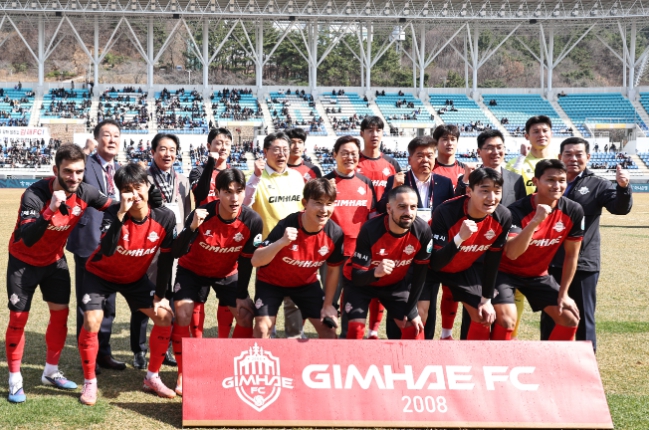 [파이낸셜경제=김예빈 기자] 경상남도는 28일 오후 김해종합운동장에서 열린 김해FC와 안산 그리너스의 홈 개막전을 찾아 김해FC의 프로리그 첫 공식 데뷔전을 축하하고 선수단을 격려했다.