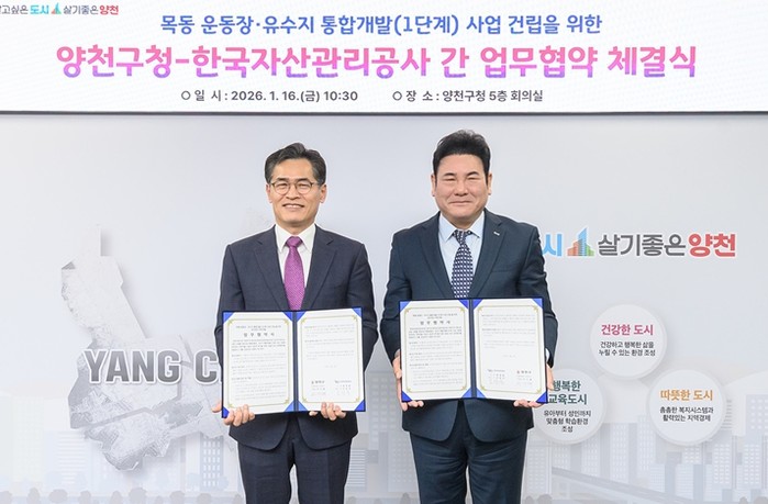 [파이낸셜경제=김예빈 기자] 양천구가 1월 16일 한국자산관리공사와 업무협약을 체결하며, 목동운동장·유수지 일대 통합개발(목동MICE)을 위한 첫걸음을 내디뎠다.
