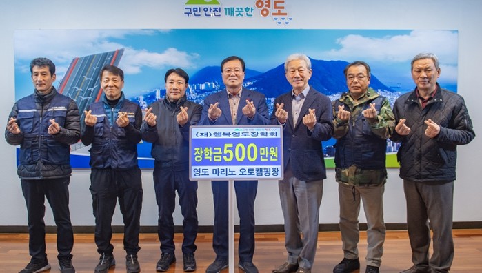 [파이낸셜경제=박영진 기자] 영도 마리노 오토캠핑장(기간제근로자 일동)은 지난 12월 19일 영도구청을 방문하여 우수한 지역인재 양성을 위해 (재)행복영도장학회에 500만 원을 기탁했다.