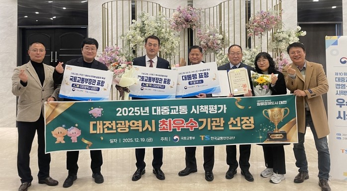 [파이낸셜경제=김영란 기자] 대전시는 국토교통부 주관 2025년 대중교통 시책평가에서 최우수기관으로 선정돼 19일 장관 표창을 수상했다.
