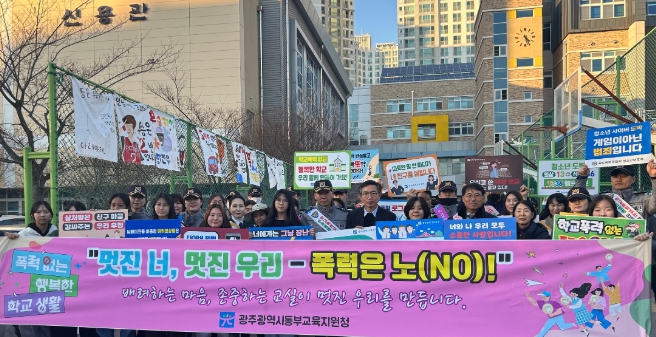 [파이낸셜경제=김예빈 기자] 광주광역시동부교육지원청이 지난 9일 오후 4시 30분부터 북구 신용중학교와 신용동 일대에서 지역사회 유관기관과 함께 ‘찾아가는 학교폭력 예방 캠페인’을 실시했다.