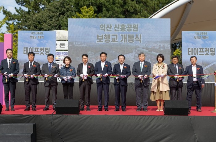 익산시는 23일 '신흥공원 보행교 개통식'을 열고 중앙체육공원과 신흥공원을 연결하는 새로운 길을 시민에게 선물했다.