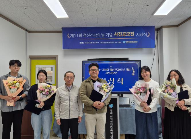 [파이낸셜경제=김예빈 기자] 김제시는 10월 10일 정신건강의 날을 맞아 정신건강의 중요성에 대한 홍보 및 관심을 고취시키고 정신건강에 대한 인식개선을 도모하고자 제11회 정신건강 사진공모전“마음행복사진관:행복의 계절”을 개최하고 23일 시상식을 개최했다고 밝혔다.