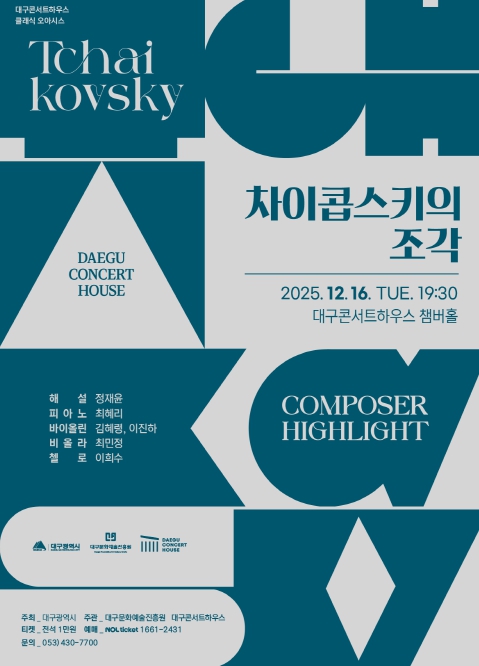 클래식 음악사를 대표하는 작곡가들을 깊이 있게 탐구하는 대구콘서트하우스의 ‘컴포저 하이라이트(Composer Highlight)’ 시리즈가 12월에는 러시아 낭만주의의 거장 표트르 일리치 차이콥스키(Pyotr Ilyich Tchaikovsky)를 주제로 찾아온다.