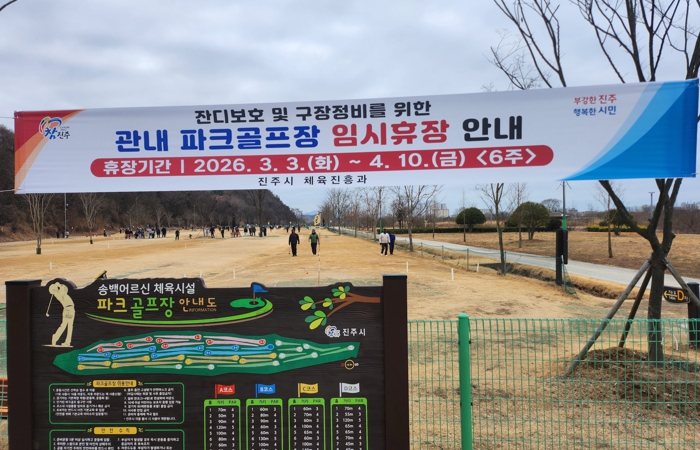 | ▲ 진주시, 봄철 잔디보호 및 시설물 정비 위해 관내 파크골프장 임시 휴장 |