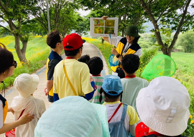 | ▲ 학교 밖 마을교육의 일환으로 섬진강 생태습지를 견학하는 어린이들 |