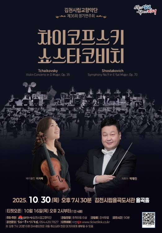 [파이낸셜경제=김지훈 기자] 김천시문화예술회관은 10월 30일 목요일 오후 7시 30분에 시립율곡도서관 2층 율곡홀에서 시립교향악단 제36회 정기연주회를 개최한다.