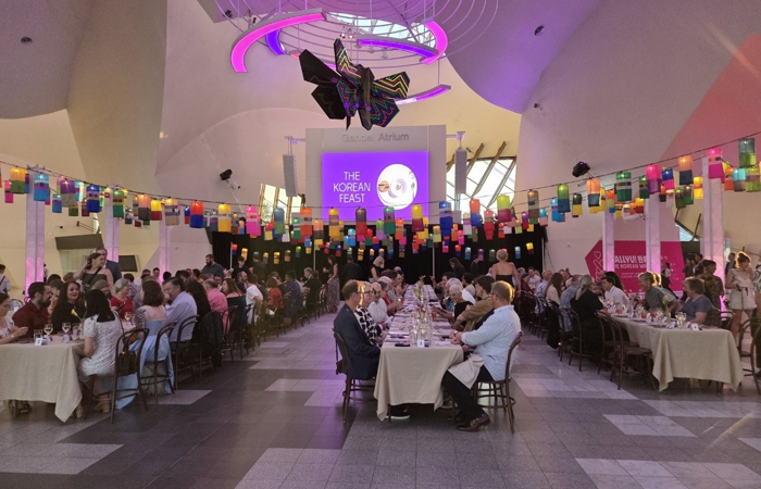 지난 20일에는 박물관 1층 메인홀(The Gandel Atrium)에서 ‘The Korean Feast’ 행사가 개최됐다. 이 행사는 한식 파인다이닝(fine-dining)의 쇼케이스(showcase)를 통해 한국의 음식과 문화를 소개하는 자리로, 현지 주요 인사와 시민들이 참석한 가운데 한국 전통문화의 아름다움을 체험하는 행사로 마련됐다. 행사장 입구 및 천장에 설치된 ‘진주실크등’은 은은한 빛과 오색의 조화로 현장을 수놓으며 큰 관심과 호응을 얻었다.