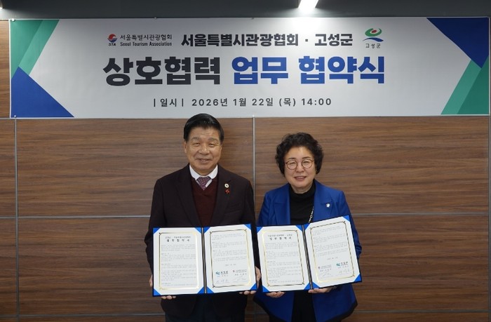 [파이낸셜경제=김예빈 기자] 경남 고성군은 1월 22일 서울특별시관광협회 회의실에서 서울특별시관광협회(회장 조태숙)와 지역 관광 활성화 및 관광산업 발전을 위한 업무협약(MOU)을 체결했다고 밝혔다.