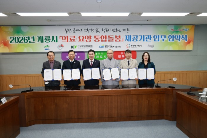 [파이낸셜경제=김영란 기자] 충남 계룡시는 5일 ‘2026년 의료·요양 통합돌봄 제공기관 업무협약식’을 개최하고 본 사업의 원활한 추진을 위한 민·관 협력체계를 구축했다고 밝혔다.